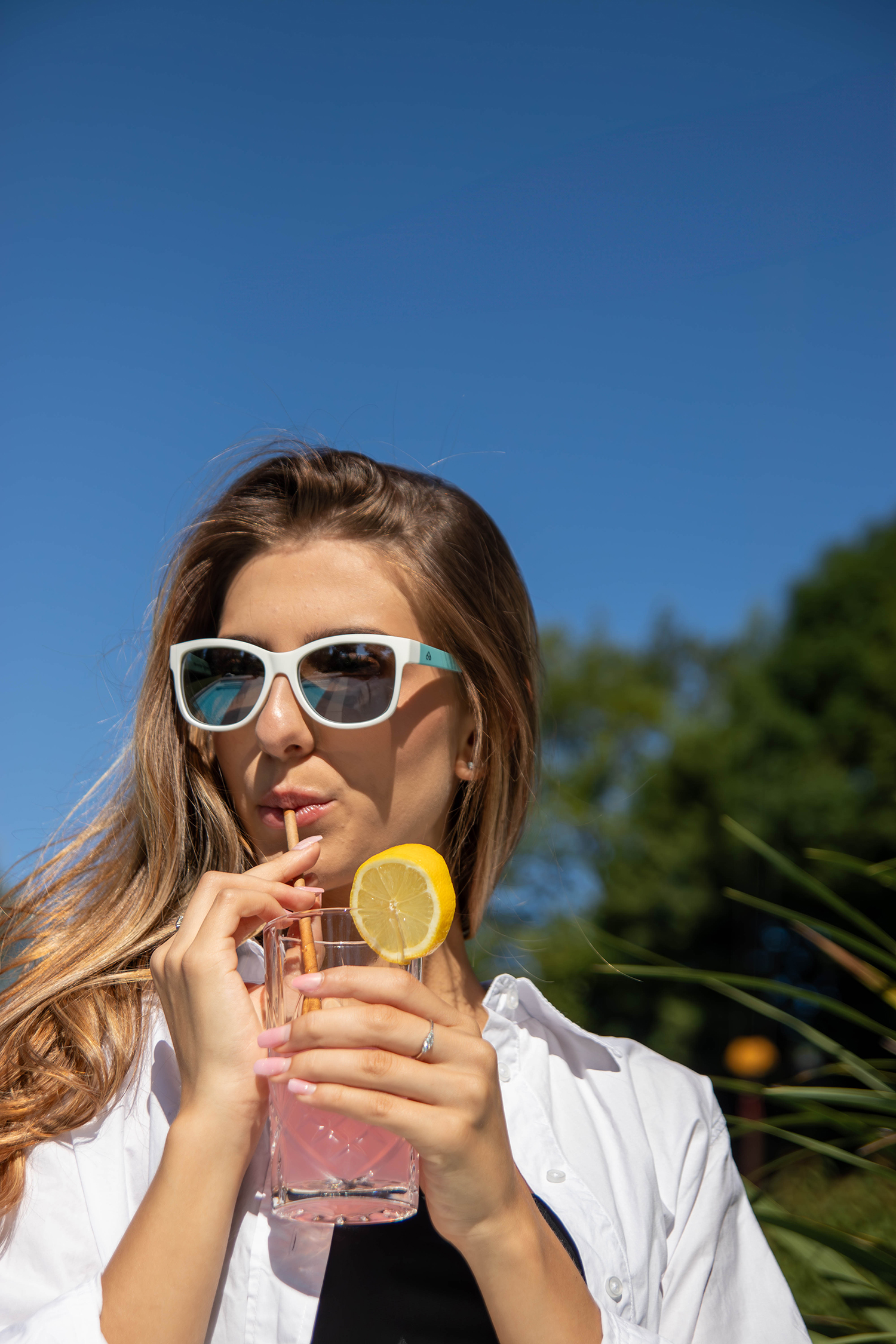 Optez pour un look frais et lumineux avec ces lunettes de soleil Mille148 au coloris bicolore blanc et bleu ciel. Une combinaison douce et moderne qui apporte une touche estivale à toutes vos tenues.